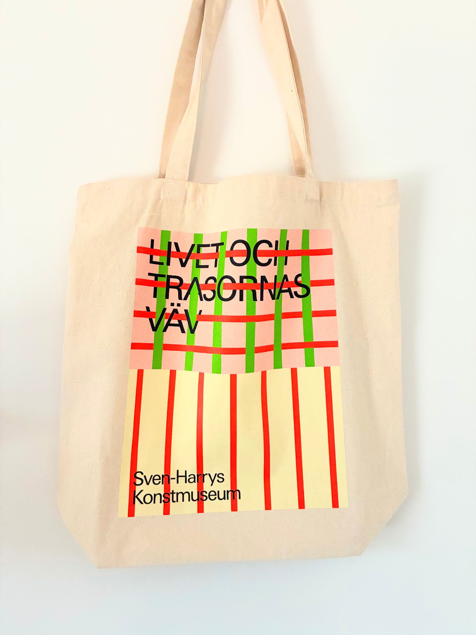 Snygg tygväska i stadig bomull. Till utställningen "Livet och trasornas väv" som visas 26/9 - 2025 till 15/3 - 2026.